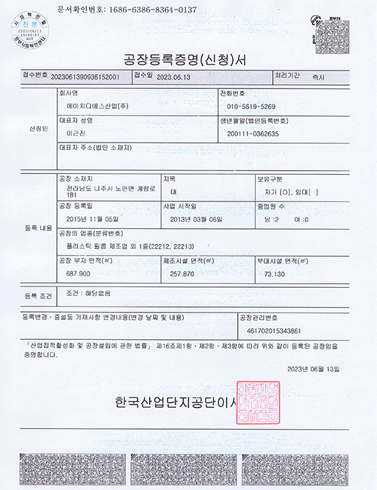 공장등록증명서