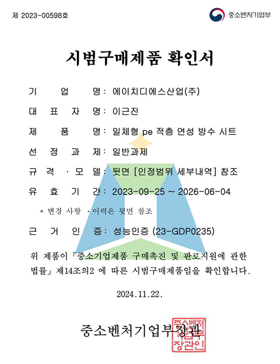 시범구매제품확인서