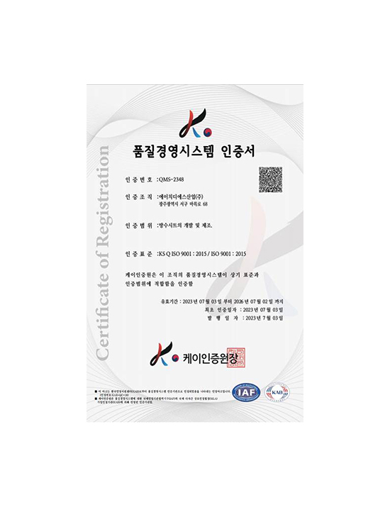 ISO품질경영시스템 인증서