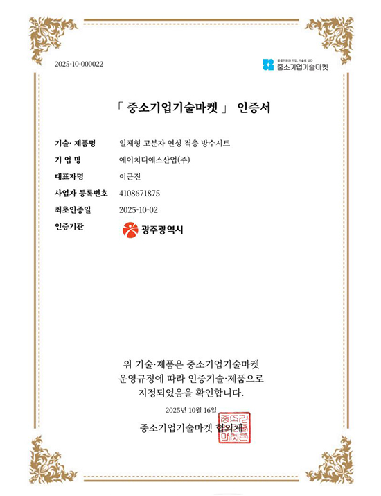 중소기업기술마켓 인증서